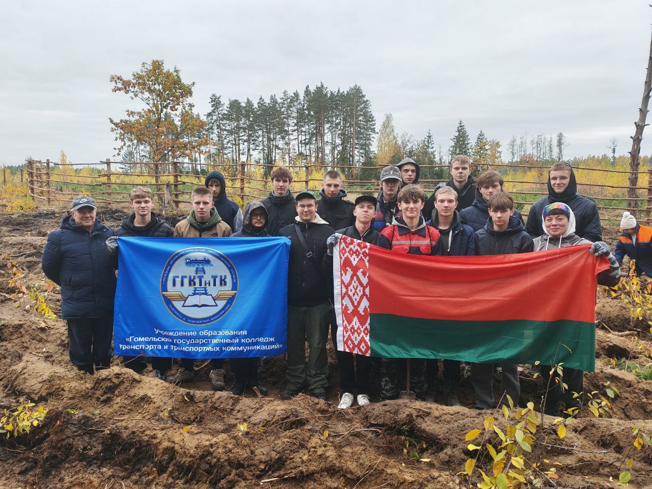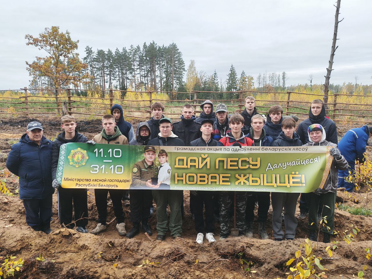 Сегодня учащиеся и сотрудники Колледжа транспорта и транспортных коммуникаций присоединились к республиканской акции по лесовосстановлению "Дай лесу новае жыццё!".