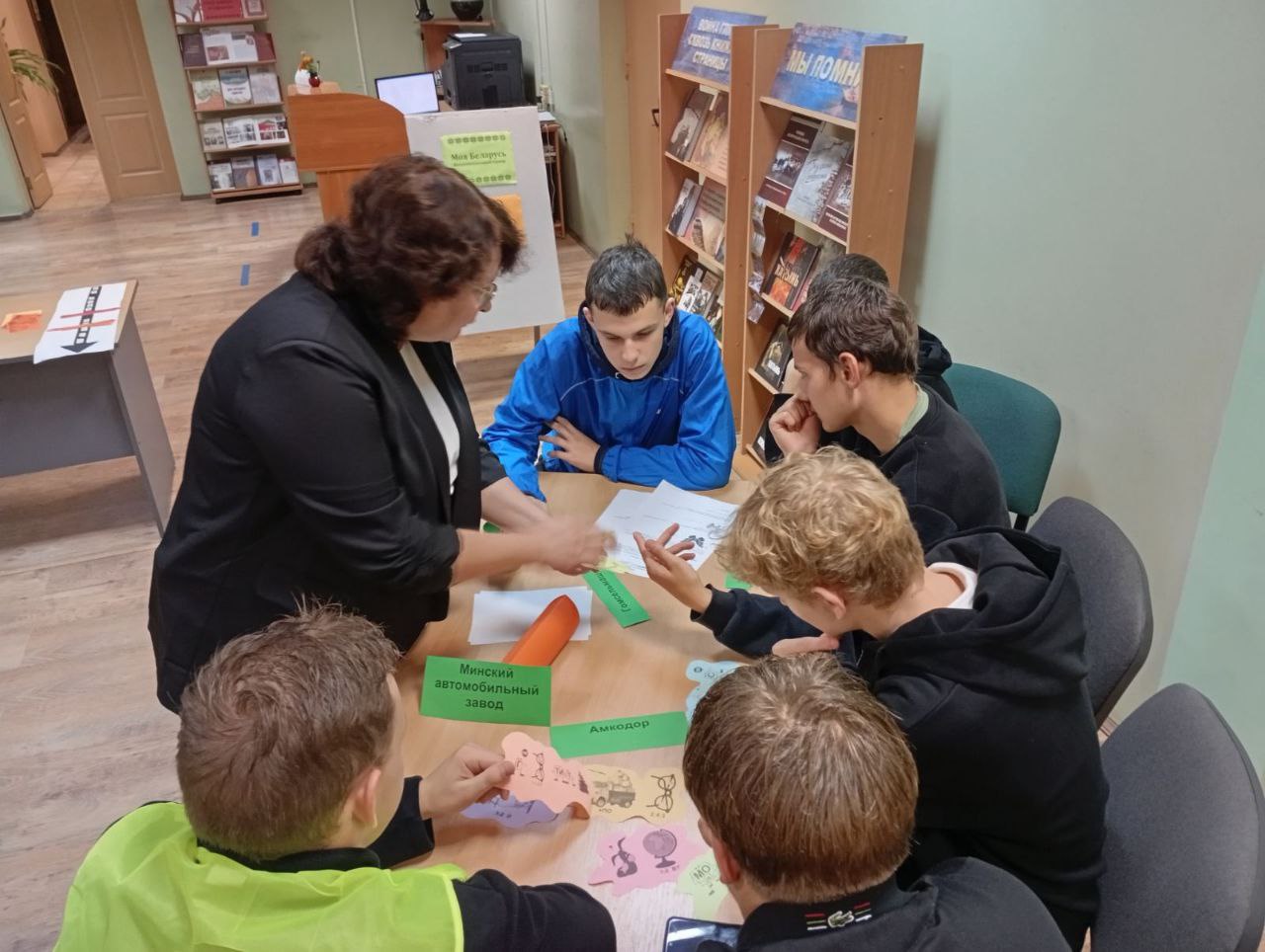 В праздничный день - День народного единства для учащихся колледжа в библиотеке -филиале №7 им. Якуба Коласа состоялся интеллектуальный турнир "Моя Беларусь" в рамках гражданско-патриотического проекта для молодёжи "Радзiма мая Беларусь". Разбившись на команды "Сож", и "Днепр", ребята состязались в вопросах по белорусской истории, литературе и культуре; разгадывали ребусы на знание экономических достижений Беларуси, заполняли ленту времени значимыми датами и событиями нашей страны, узнавали портреты белорусских писателей по их биографиям. Учащиеся узнали об истории возникновения государственного праздника, на исторических примерах убедились в необходимости единства белорусского народа, его сплочённости и солидарности для сохранения независимости и суверенитета нашего государства. Мероприятия побудило учащихся задуматься о важности единства для нашей страны и народа, которое является настоящей силой, помогающей нам преодолевать все препятствия и строить будущее для нашей страны.