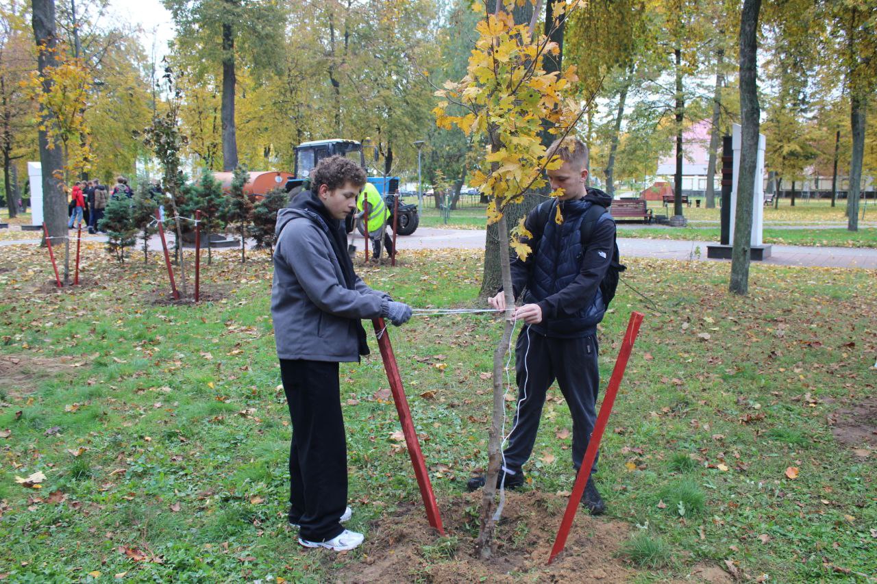 Сегодня учащиеся учреждения образования совместно с преподавателем Алексеем Леонидовичем Язеповым присоединяйтесь к Республиканской акции Единый день озеленения. Ребята высадили молодые саженцы деревьев на территории Аллее Героев.