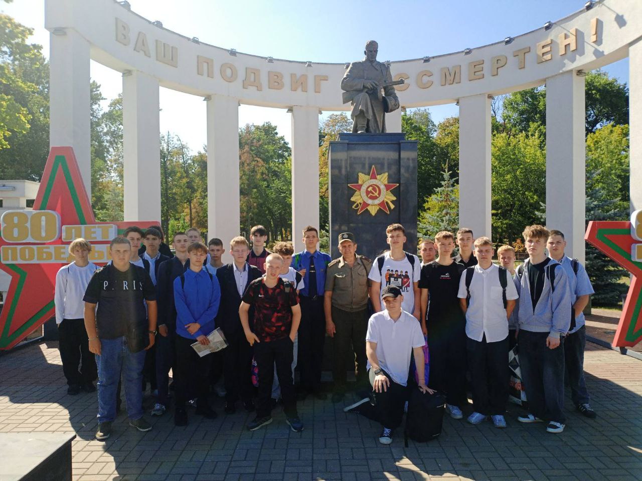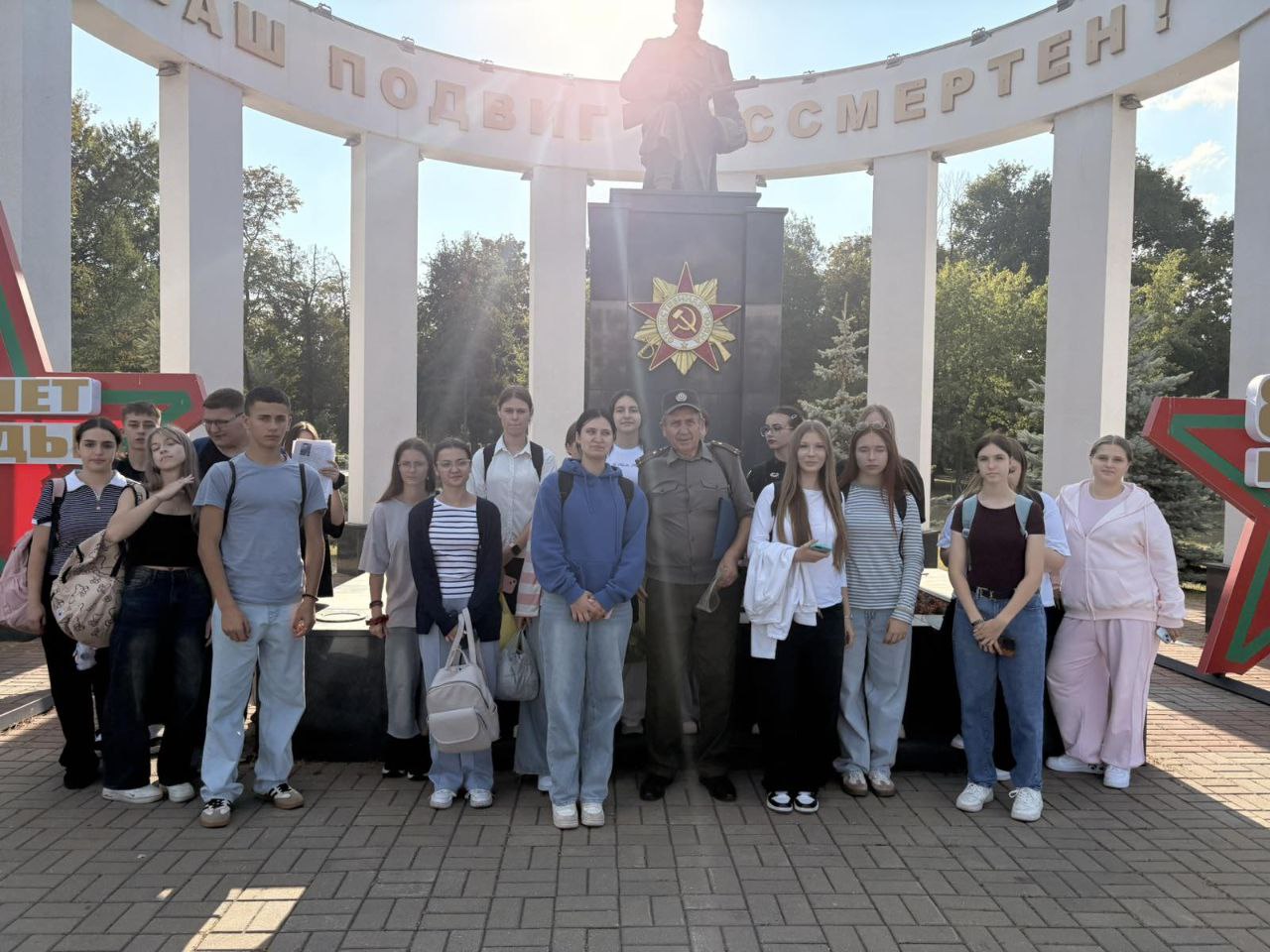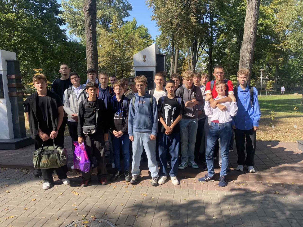 С 1 по 16 сентября под руководством руководителя военно-патриотического воспитания Александра Ивановича Цыкунова учащиеся первого курса посетили мемориальный комплекс "Аллея Героев", где увековечена память о 25 Героях Советского Союза, освобождавших г. Гомель.