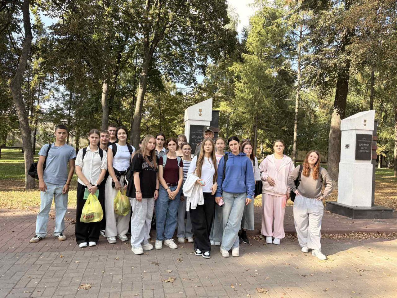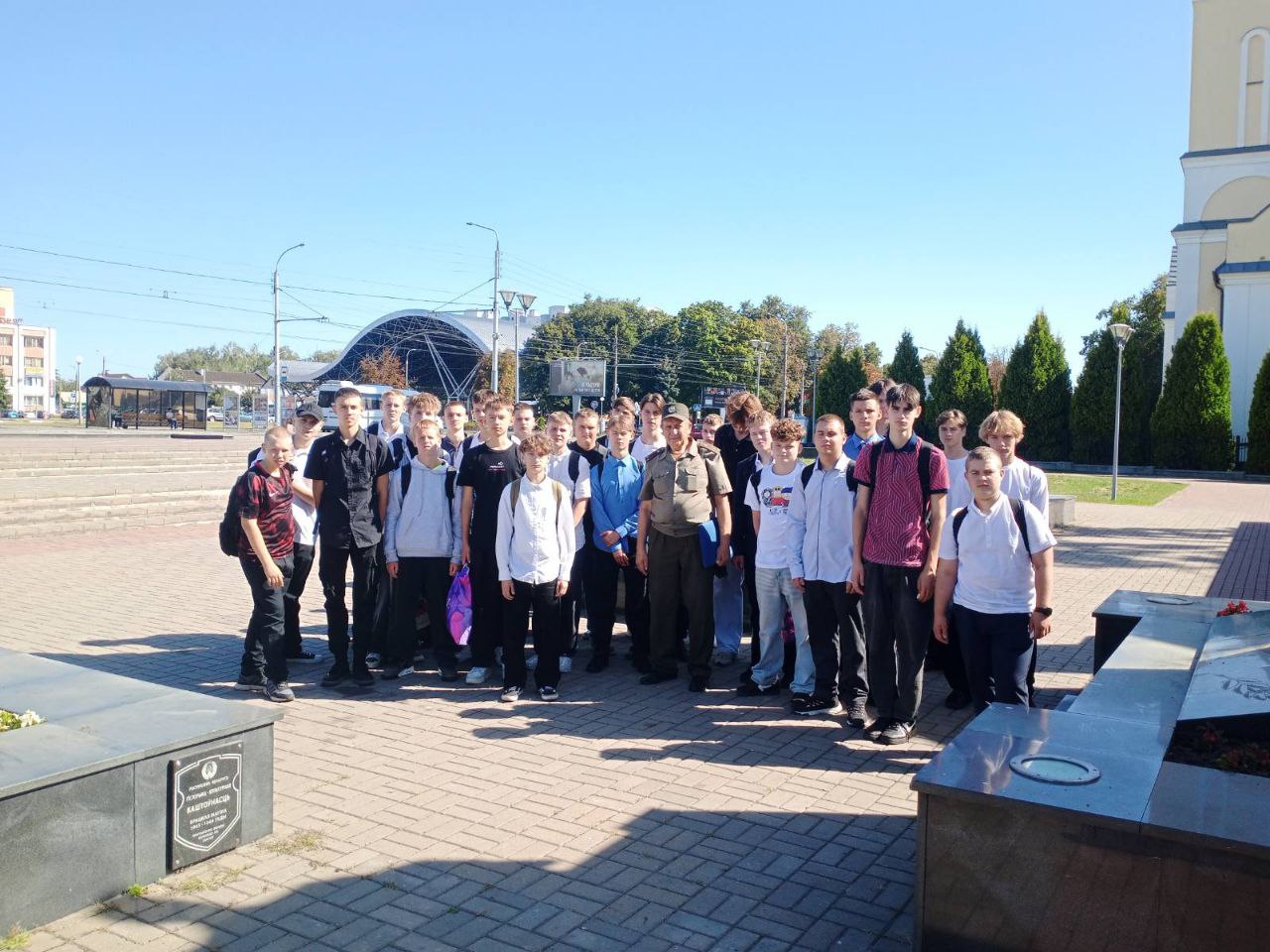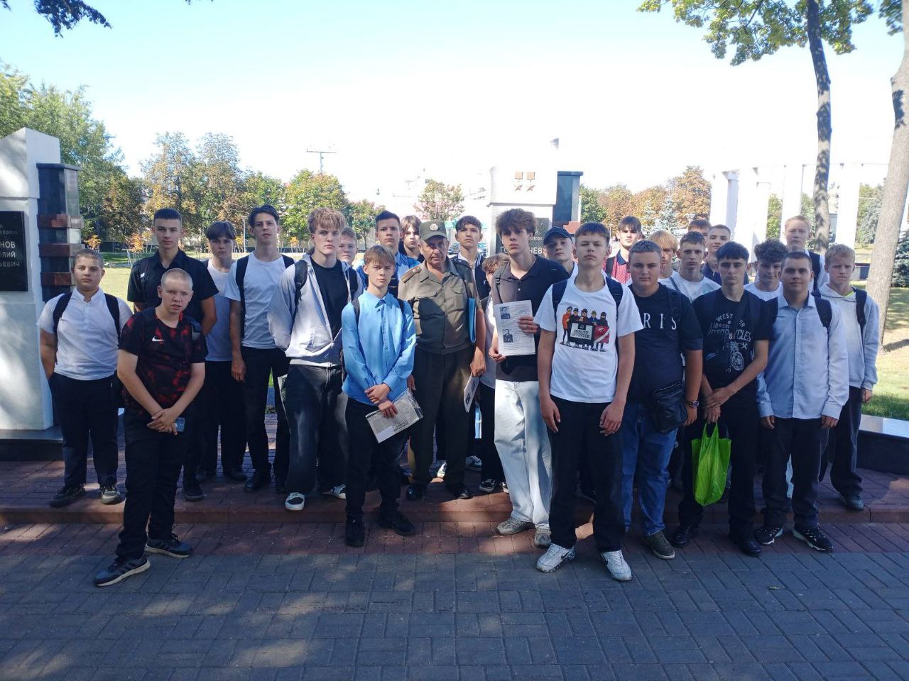 С 1 по 16 сентября под руководством руководителя военно-патриотического воспитания Александра Ивановича Цыкунова учащиеся первого курса посетили мемориальный комплекс "Аллея Героев", где увековечена память о 25 Героях Советского Союза, освобождавших г. Гомель.