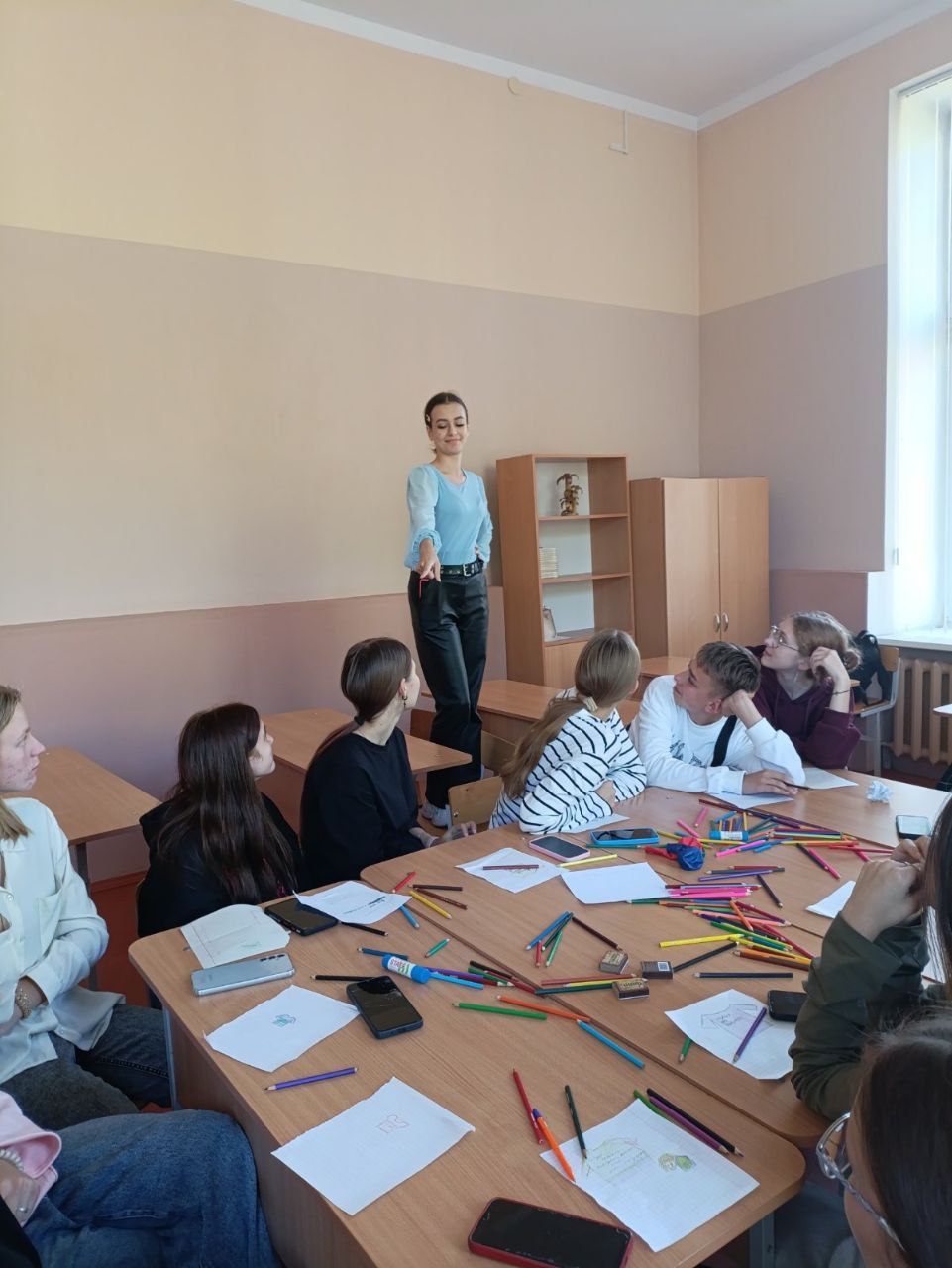 С целью сплочения коллектива, получения навыков совместной работы и обучения педагог-психолог Наталья Викторовна Жданова в учебных группах первого курса проходит групповые занятия - тренинг адаптации "Мы команда!".