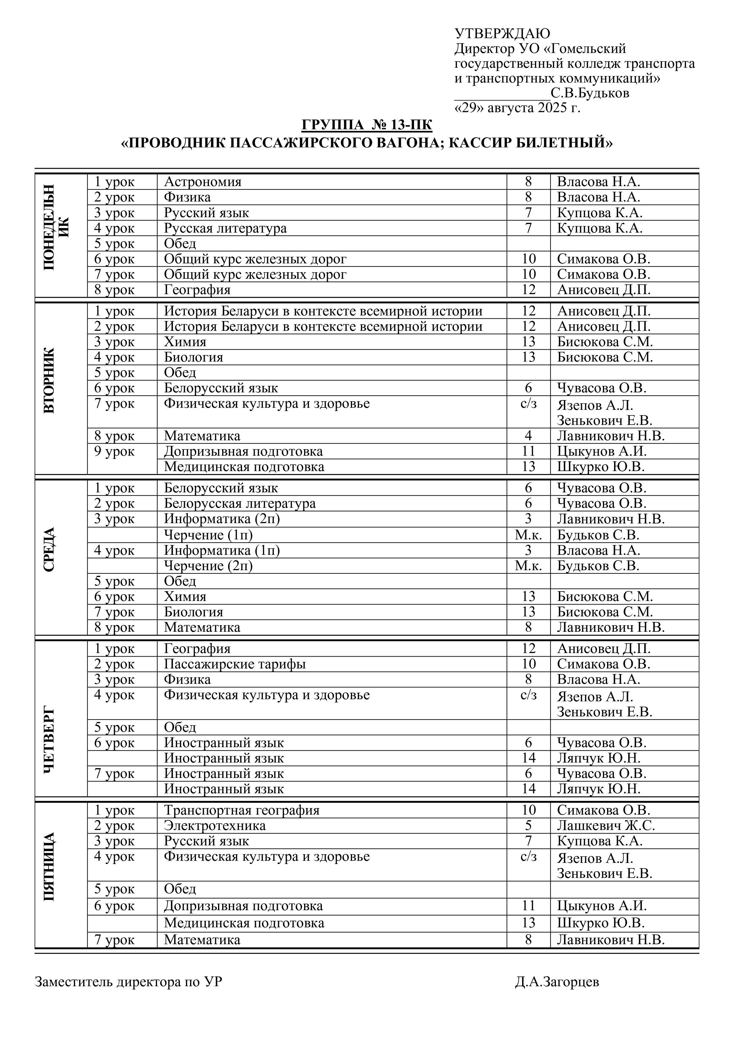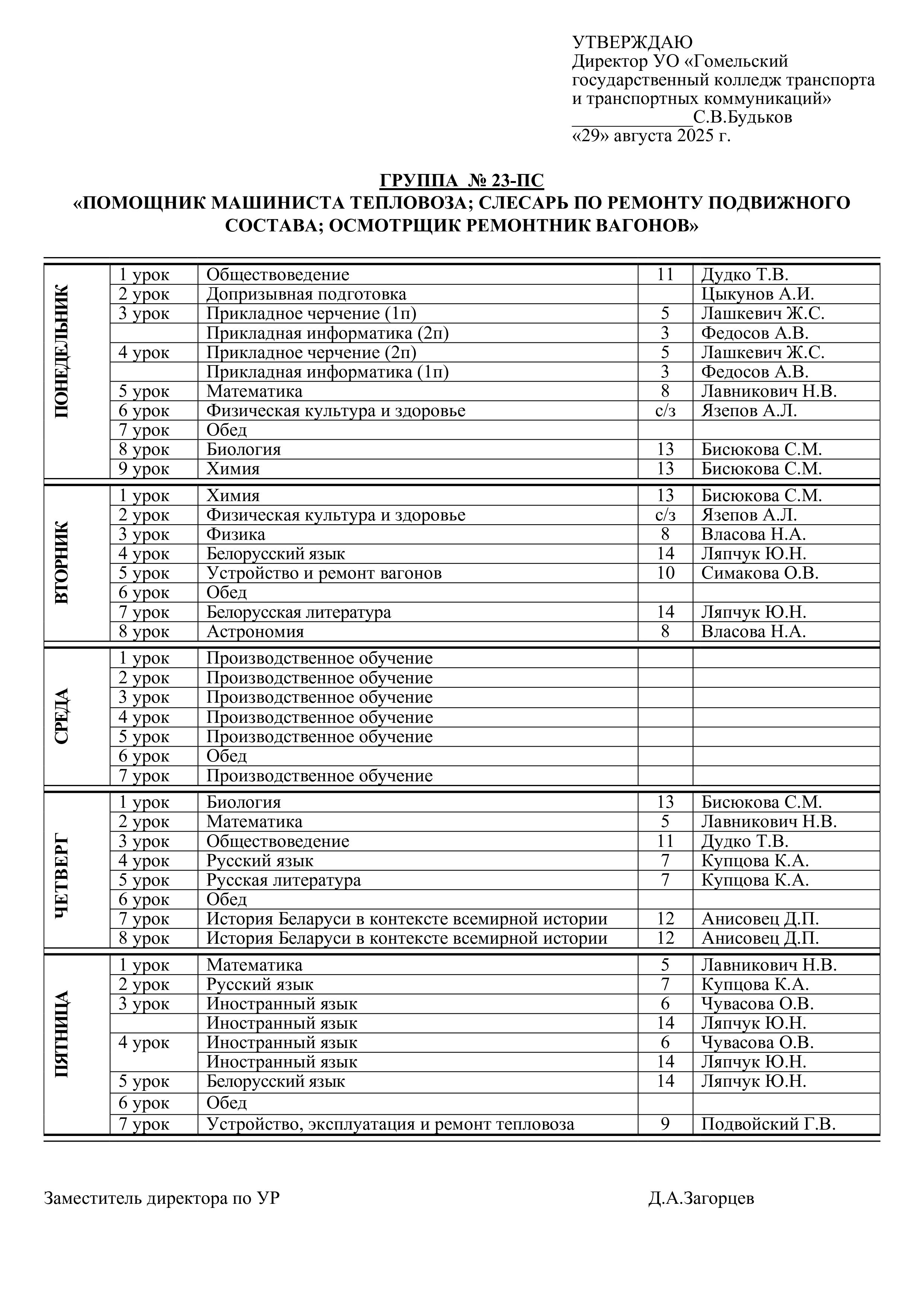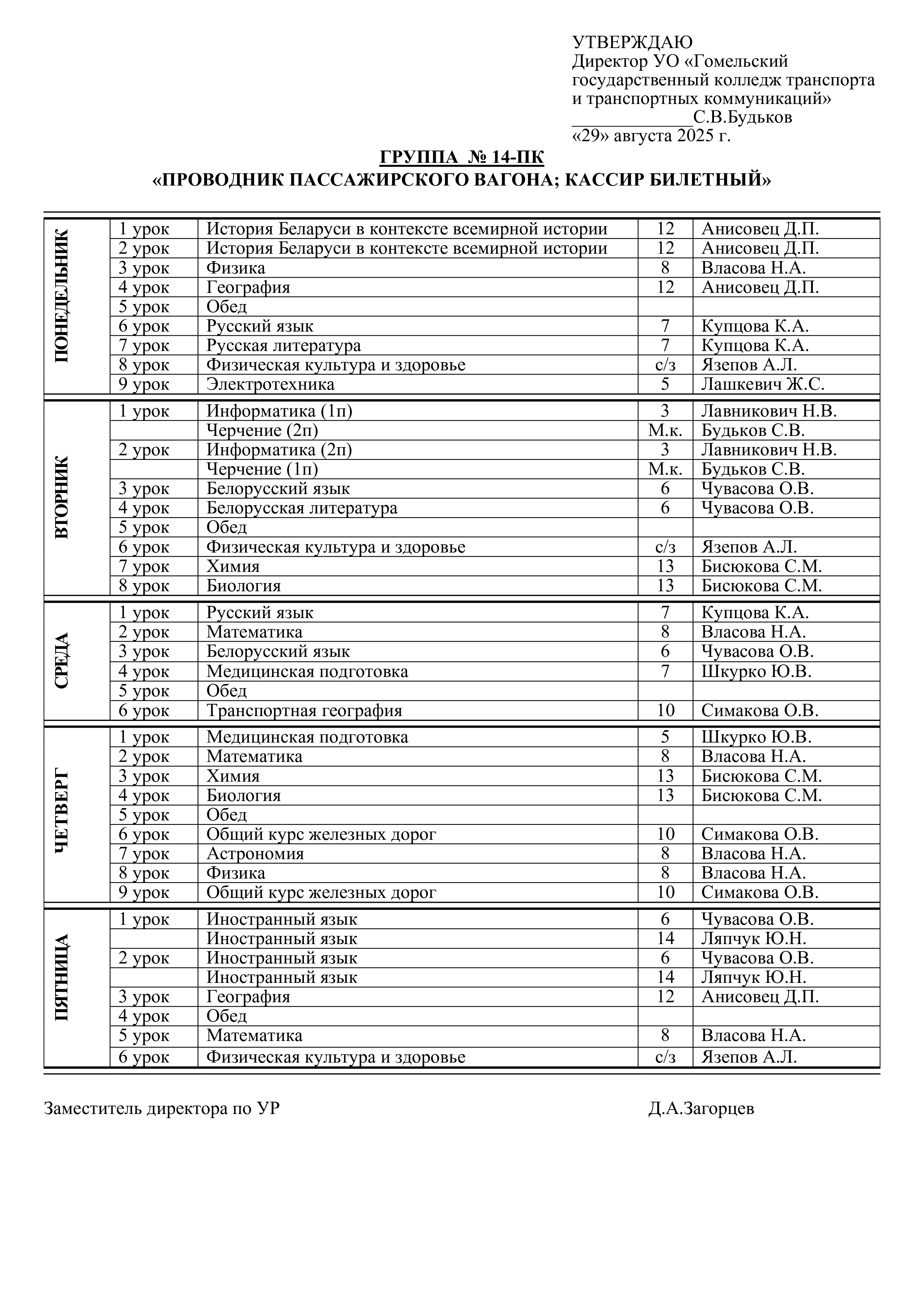 Расписание занятий