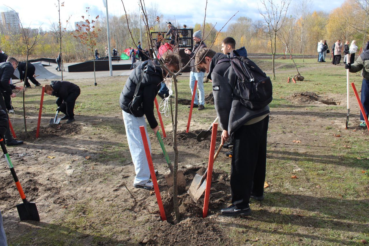 После торжественного открытия новой скейт-площадки в зоне отдыха учащиеся оказали помощь в высадке саженцев молоды деревьев. Символически повязали колокольчики на высаженные саженцы.