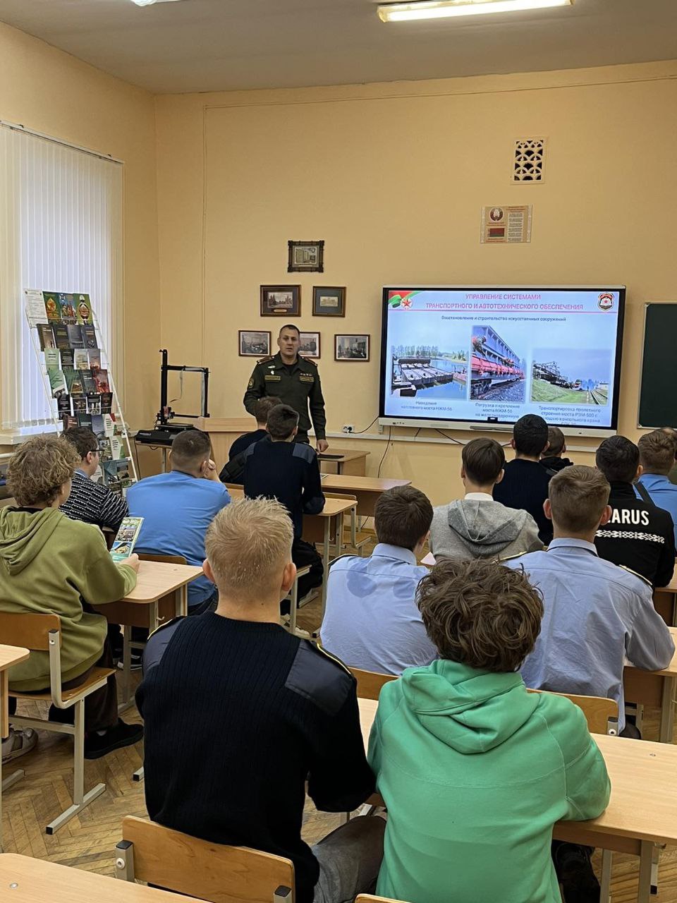 Учащиеся колледжа посетили Военно-транспортный факультет в УО"БелГут"! Где ознакомились с историей создания военно-транспортного факультета, условиями приёма абитуриентов на военно-транспортный факультет. С учащимися провели тактико-специальное занятие транспортных войск на макете (тактический участок местности), выполненили упражнения стрельбы из автомата АК-74 по электронной мишени и ознакомили с основными образцами беспилотных летательных аппаратов Вооружённых сил РБ